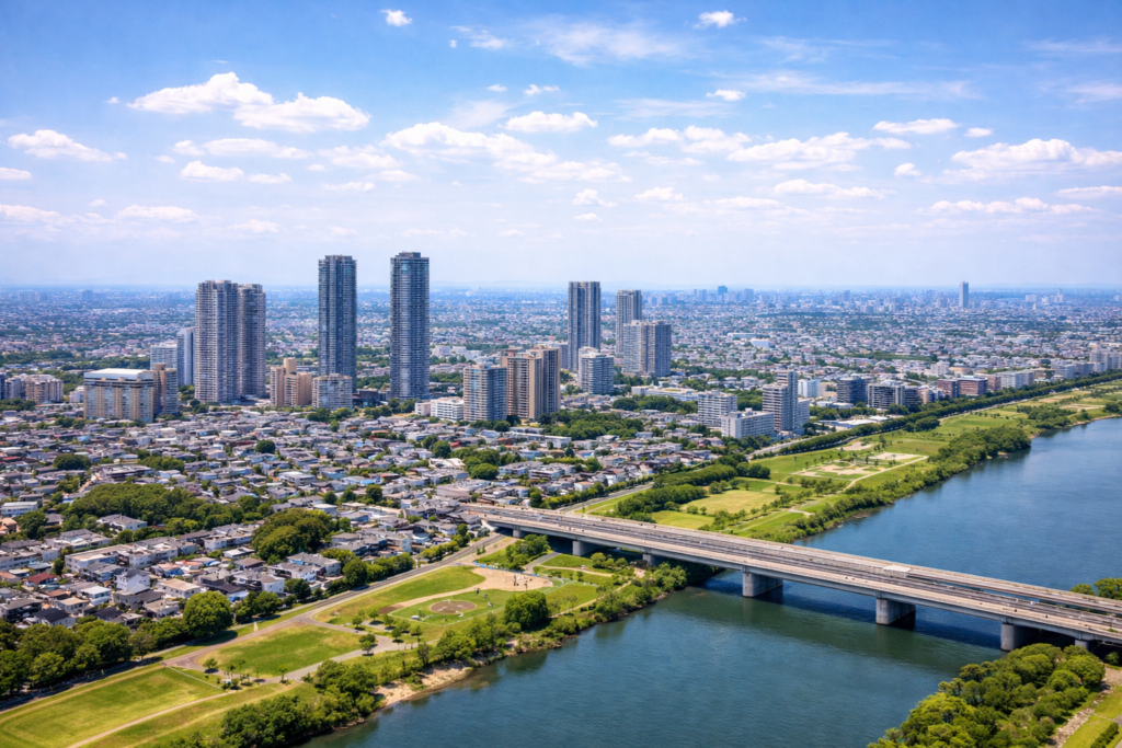 川口市の屋根修理ガイド。 東京に隣接する住宅密集地特有の「近隣配慮」や「ヒートアイランド(暑さ)対策」、荒川流域の強風対策について解説します。