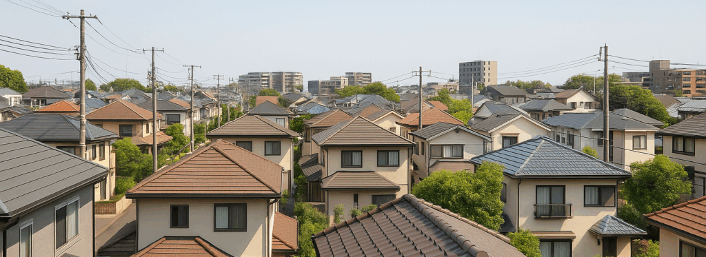 都心部は建物が密集し、足場設置の制約や搬入ルートの確保が難しいため、同規模の住宅でも郊外より費用がやや高くなりがちです。ゲリラ豪雨や台風の通過で雨仕舞いの弱点が露呈し、築20年前後のスレート屋根では防水シートの劣化が雨漏りの主因になるケースが目立ちます。多摩地域では勾配の強い屋根や大きめの戸建てが多く、足場・養生のコストが上振れする傾向があります。